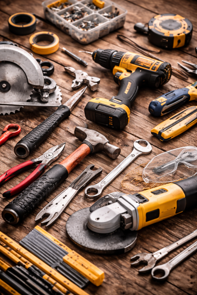 Ferramentas manuais, elétricas, à bateria e pneumáticas.